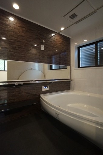 広々とした浴槽、高級感あふれるデザインでお風呂に入るのが楽しくなるような浴室になりました。一般的な浴室とは違うデザインになり、一味違う浴室に仕上がりました。