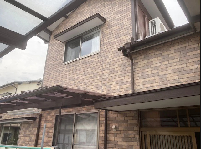 トタン外壁の一面を剥がし、断熱ペアガラスサッシに入れ替えた上でレンガ調の窯業系サイディングに張り替えた事例です。