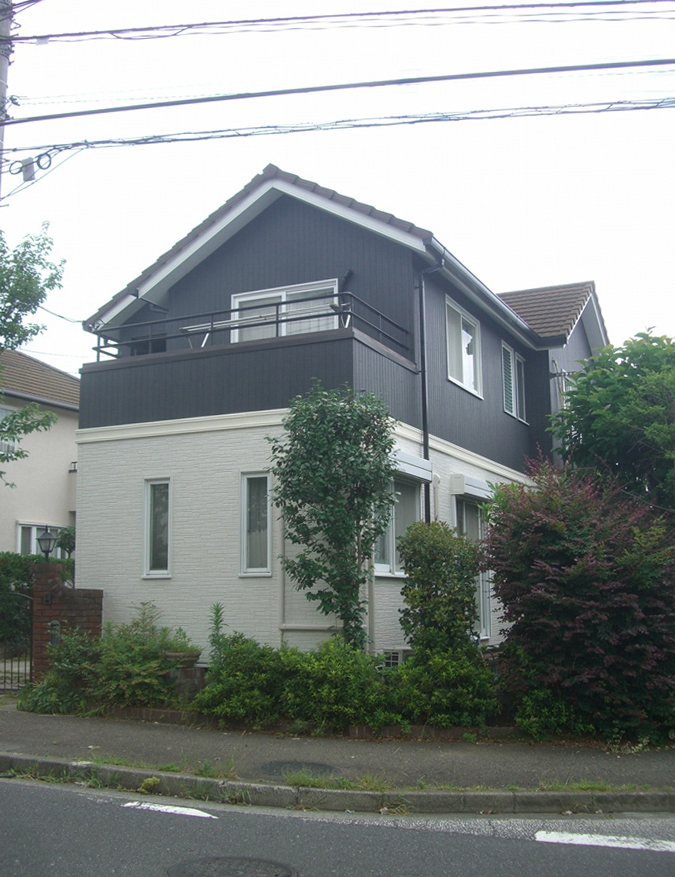 西洋風のモルタル外壁でしたが、傷んでいたため耐久性の高いサイディングに張り替えリフォーム。錆びていたベランダも交換し、外装全体を落ち着いたシンプルモダンな印象に一新しました。