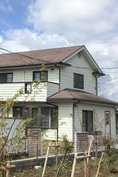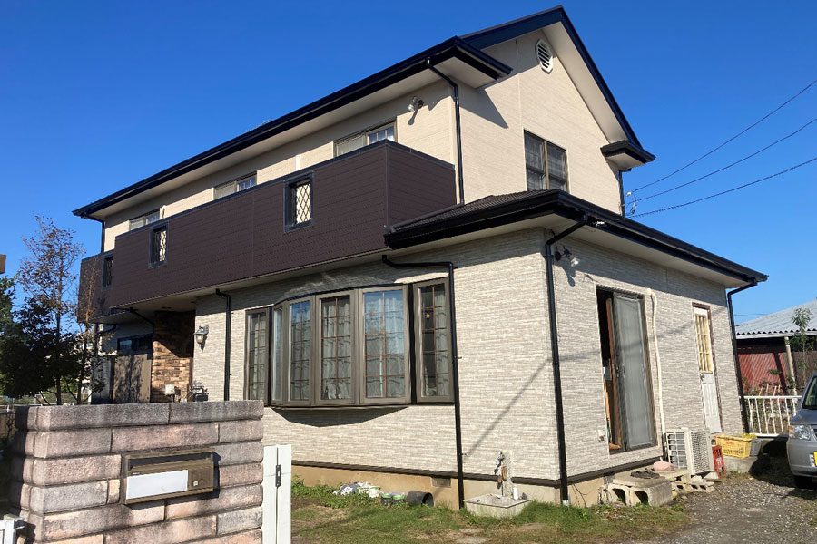 既存の窯業系サイディングを剥がし、金属サイディングに張り替えた事例です。屋根も塗装することで、新築同様の美観を取り戻しただけでなく、外壁の軽量化で住宅の耐震性能も大幅にアップしています。