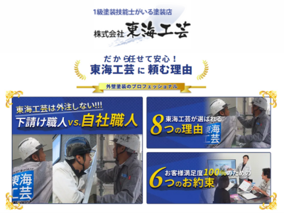 株式会社 東海工芸は、設立25年以上、7,000棟以上の施工実績がある屋根外壁塗装専門店です。多くの塗料メーカーから表彰を受けており、高品質で丁寧な施工が評価されています。