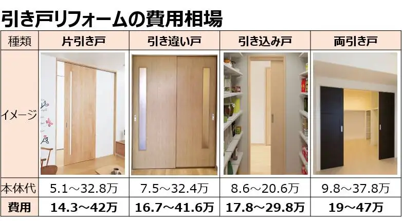 とくに開き戸から引き戸へリフォームする場合には、付帯工事費用が高くなる傾向があります。