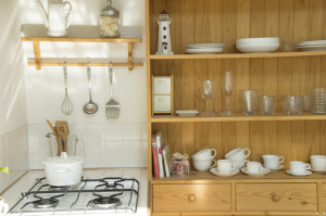 意外な組み合わせですが、引き出しを利用することで収納力がアップします。お椀や小皿など、大量には重ねにくい食器類も、引き出しに分けて収納すればスペースを有効に活用できます。