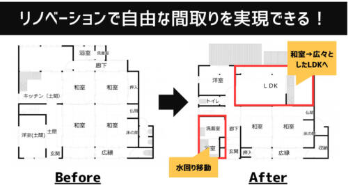 古民家の場合、昔のライフスタイルに合わせた間取りのままでは住みにくいことがあります。
