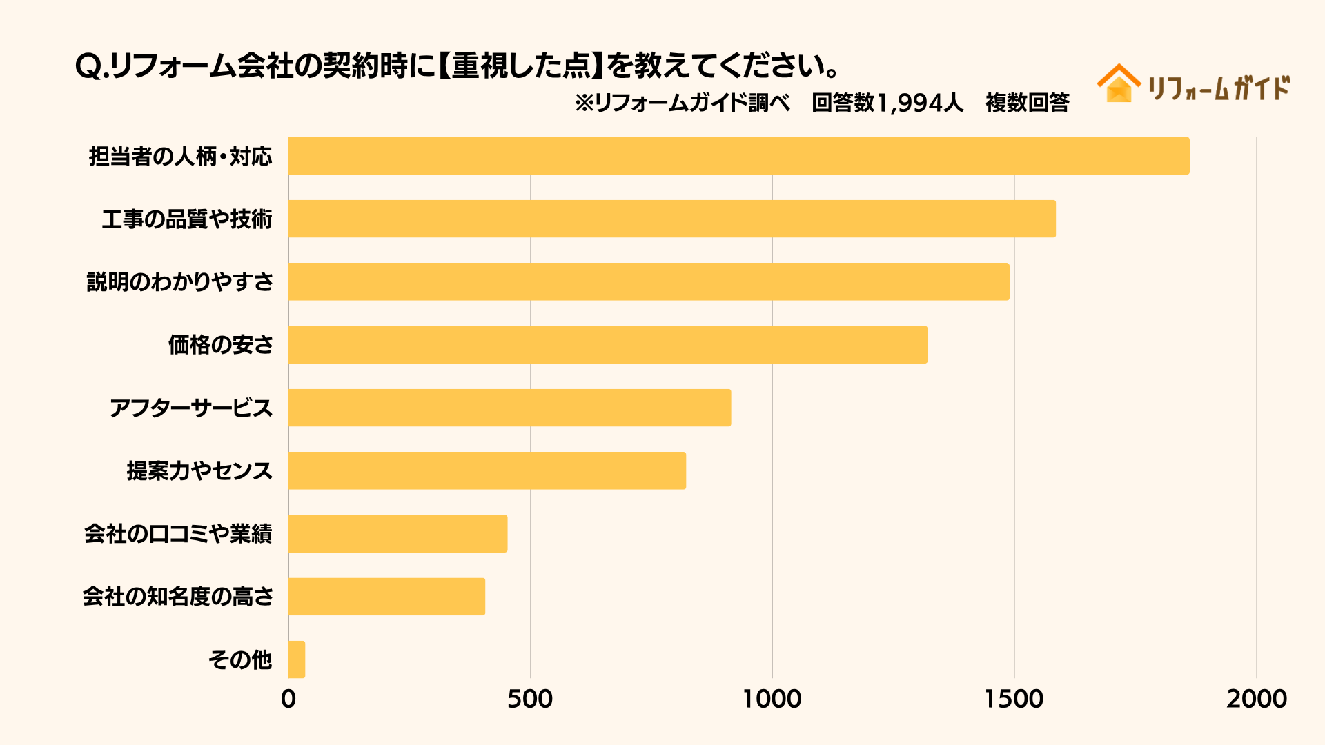 当社が行ったアンケートでは、契約時に重視した点として「担当者の人柄・対応」「説明のわかりやすさ」が上位に挙がっていました。