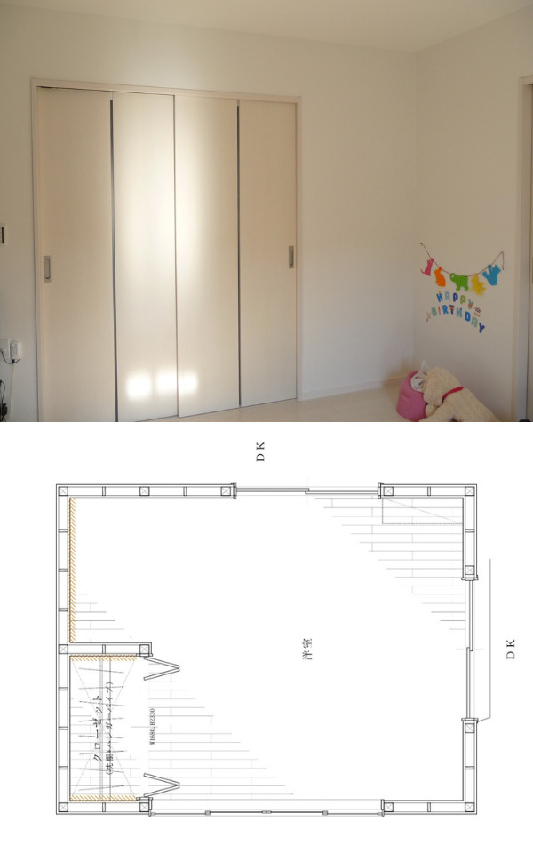 和室にあった2つの押入れは、解体して半分をクローゼットに、もう半分は部屋の一部にすることでお部屋も広々使えるようになりました。